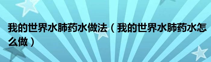 我的世界水肺药水做法(我的世界水肺药水怎么做)