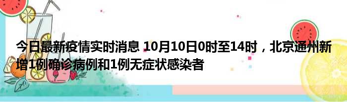 今日最新疫情实时消息 10月10日0时至14时,北京通州新增1例确诊病例和1例无症状感染者