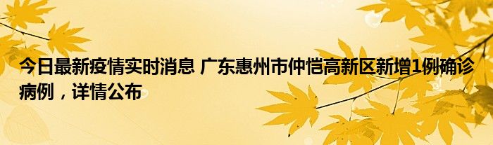 今日最新疫情实时消息 广东惠州市仲恺高新区新增1例确诊病例,详情公布