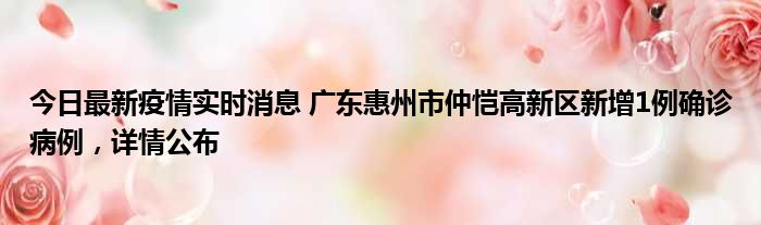 今日最新疫情实时消息 广东惠州市仲恺高新区新增1例确诊病例,详情公布