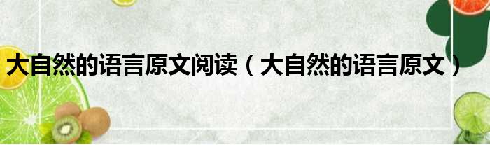 导读 大家好,今天小六子来为大家解答以下的问题,关于大自然的语言原文阅读,大自然的语言原文这个很多人还不知道,现在让我们一起来看看吧!1、
