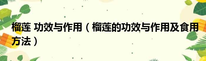 榴莲 功效与作用(榴莲的功效与作用及食用方法)