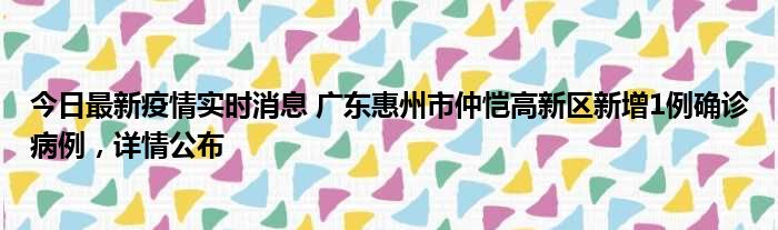 今日最新疫情实时消息 广东惠州市仲恺高新区新增1例确诊病例,详情公布