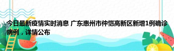 今日最新疫情实时消息 广东惠州市仲恺高新区新增1例确诊病例,详情公布