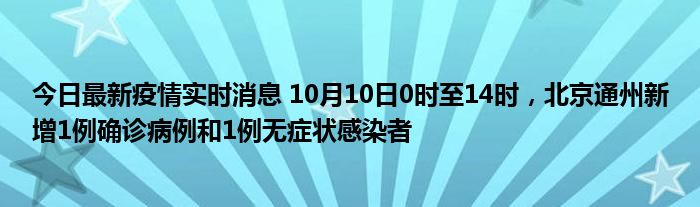 今日最新疫情实时消息 10月10日0时至14时,北京通州新增1例确诊病例和1例无症状感染者