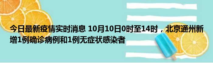 今日最新疫情实时消息 10月10日0时至14时,北京通州新增1例确诊病例和1例无症状感染者