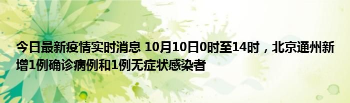 今日最新疫情实时消息 10月10日0时至14时,北京通州新增1例确诊病例和1例无症状感染者