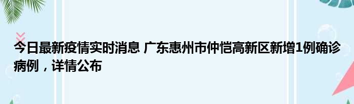 今日最新疫情实时消息 广东惠州市仲恺高新区新增1例确诊病例,详情公布