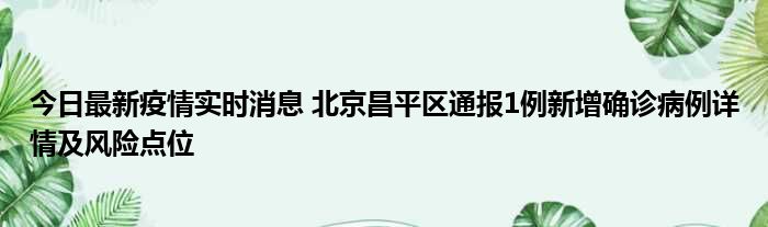 今日最新疫情实时消息 北京昌平区通报1例新增确诊病例详情及风险点位