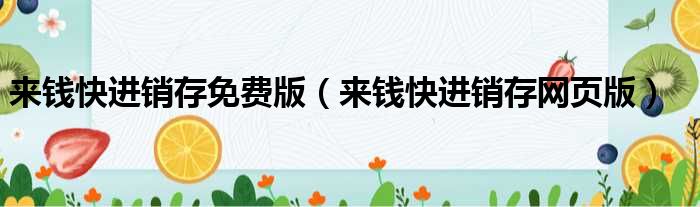 导读 大家好,今天小六子来为大家解答以下的问题,关于来钱快进销存免费版,来钱快进销存网页版这个很多人还不知道,现在让我们一起来看看吧!1、