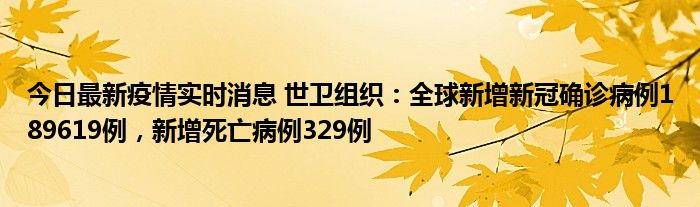 今日最新疫情实时消息 世卫组织:全球新增新冠确诊病例189619例,新增死亡病例329例
