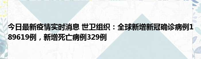 今日最新疫情实时消息 世卫组织:全球新增新冠确诊病例189619例,新增死亡病例329例