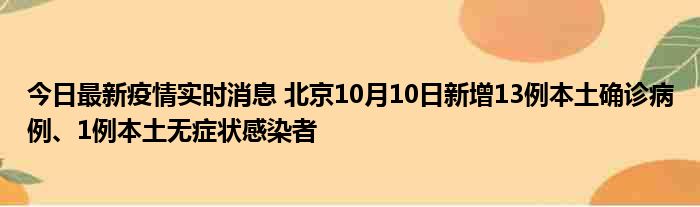 今日最新疫情实时消息 北京10月10日新增13例本土确诊病例、1例本土无症状感染者
