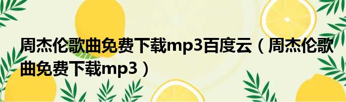 周杰伦歌曲免费下载mp3百度云(周杰伦歌曲免费下载mp3)