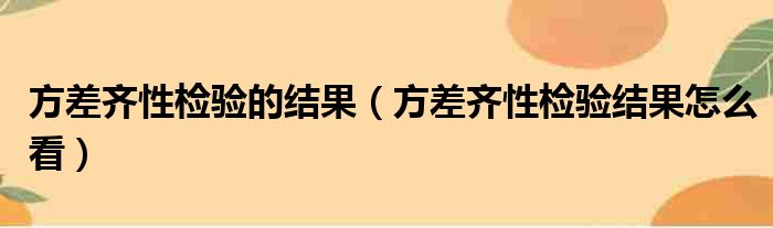 导读 大家好,今天小六子来为大家解答以下的问题,关于方差齐性检验的结果,方差齐性检验结果怎么看这个很多人还不知道,现在让我们一起来看看吧