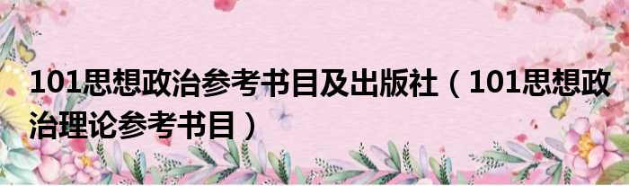 导读 大家好,今天小六子来为大家解答以下的问题,关于101思想政治参考书目及出版社,101思想政治理论参考书目这个很多人还不知道,现在让我们一