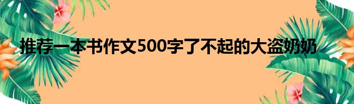 导读 大家好,今天小六子来为大家解答以下的问题,关于推荐一本书作文500字了不起的大盗奶奶这个很多人还不知道,现在让我们一起来看看吧!1、《