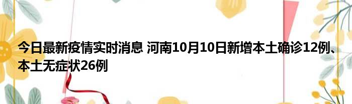 您的位置:首页 >房产频道 > 综合精选 > 今日最新疫情实时消息 河南10月10日新增本土确诊12例、本土无症状26例 2022-10-11 17:02:05 • 来源: 导读 免责声明:本文由用户上传,如有侵权请联系删除! 上一篇:镇江到扬州城际公交车(镇江到扬州城际公交) 下一篇:为啥张怡宁叫大魔王(张怡宁为什么叫大魔王)