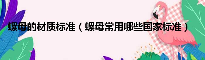 大家好,今天小六子来为大家解答以下的问题,关于螺母的材质标准,螺母常用哪些国家标准这个很多人还不知道,现在让我们一起来看看吧!