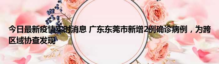 今日最新疫情实时消息 广东东莞市新增2例确诊病例,为跨区域协查发现