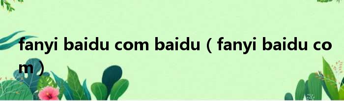 fanyi baidu com baidu(fanyi baidu com)