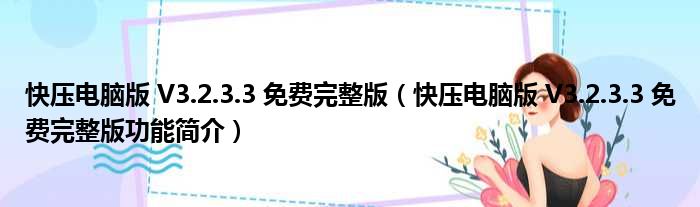 快压电脑版 V3.2.3.3 免费完整版(快压电脑版 V3.2.3.3 免费完整版功能简介)