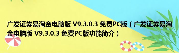 广发证券易淘金电脑版 V9.3.0.3 免费PC版(广发证券易淘金电脑版 V9.3.0.3 免费PC版功能简介)