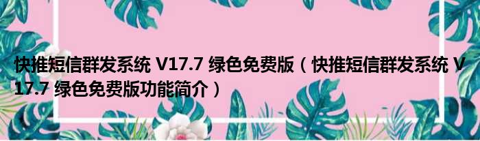 导读 大家好,关于快推短信群发系统 V17 7 绿色免费版,快推短信群发系统 V17 7 绿色免费版功能简介这个很多人还不知道,小勒来为大家解答以上