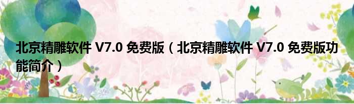 北京精雕软件 V7.0 免费版(北京精雕软件 V7.0 免费版功能简介)