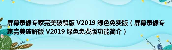 屏幕录像专家完美破解版 V2019 绿色免费版(屏幕录像专家完美破解版 V2019 绿色免费版功能简介)