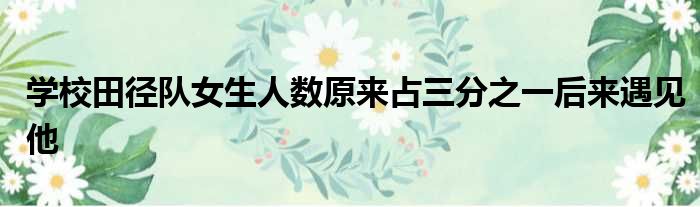 导读 大家好,今天小六子来为大家解答以下的问题,关于学校田径队女生人数原来占三分之一后来遇见他这个很多人还不知道,现在让我们一起来看看吧