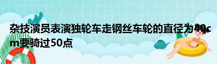 大家好,今天小六子来为大家解答以下的问题,关于杂技演员表演独轮车走钢丝车轮的直径为40cm要骑过50点这个很多人还不知道,现在让我们一起来看看吧!