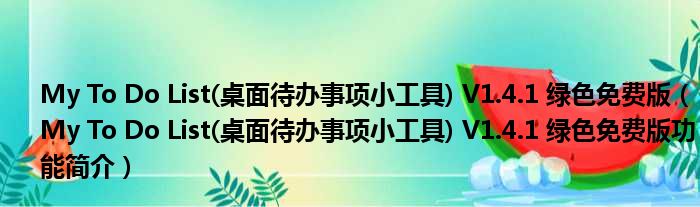 导读 大家好,关于My To Do List(桌面待办事项小工具) V1 4 1 绿色免费版,My To Do List(桌面待办事项小工具) V1 4 1 绿色免费版功能