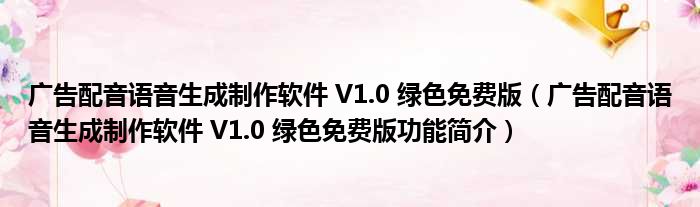 广告配音语音生成制作软件 V1.0 绿色免费版(广告配音语音生成制作软件 V1.0 绿色免费版功能简介)