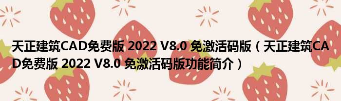 导读 大家好,关于天正建筑CAD免费版 2022 V8 0 免激活码版,天正建筑CAD免费版 2022 V8 0 免激活码版功能简介这个很多人还不知道,小勒来为