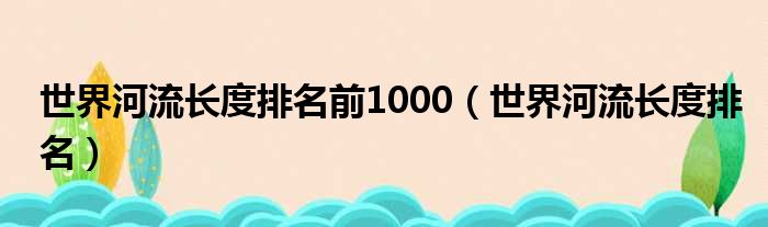 导读 大家好,今天小六子来为大家解答以下的问题,关于世界河流长度排名前1000,世界河流长度排名这个很多人还不知道,现在让我们一起来看看吧!1