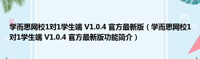 学而思网校1对1学生端 V1.0.4 官方最新版(学而思网校1对1学生端 V1.0.4 官方最新版功能简介)
