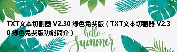 TXT文本切割器 V2.30 绿色免费版(TXT文本切割器 V2.30 绿色免费版功能简介)
