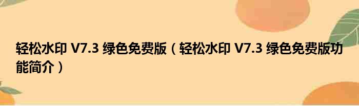 轻松水印 V7.3 绿色免费版(轻松水印 V7.3 绿色免费版功能简介)