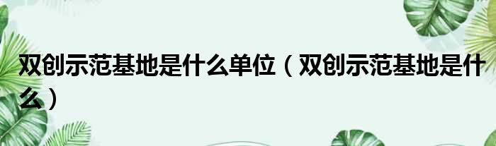 双创示范基地是什么单位(双创示范基地是什么)