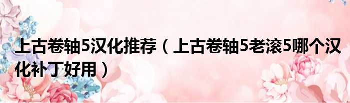 上古卷轴5汉化推荐(上古卷轴5老滚5哪个汉化补丁好用)