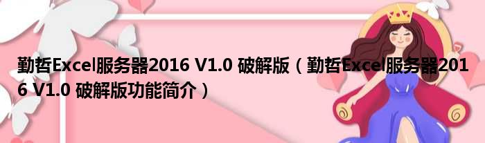 导读 大家好,关于勤哲Excel服务器2016 V1 0 破解版,勤哲Excel服务器2016 V1 0 破解版功能简介这个很多人还不知道,小勒来为大家解答以上的问