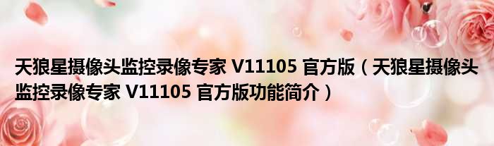 导读 大家好,关于天狼星摄像头监控录像专家 V11105 官方版,天狼星摄像头监控录像专家 V11105 官方版功能简介这个很多人还不知道,小勒来为大