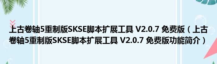 上古卷轴5重制版SKSE脚本扩展工具 V2.0.7 免费版(上古卷轴5重制版SKSE脚本扩展工具 V2.0.7 免费版功能简介)