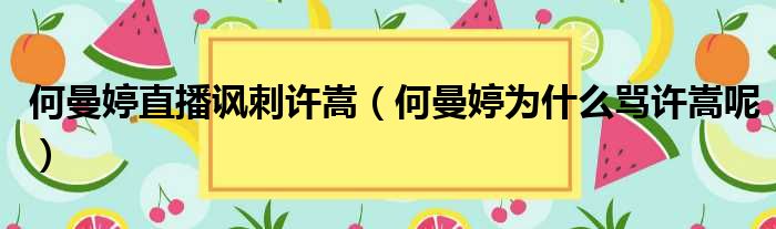 大家好,今天小六子来为大家解答以下的问题,关于何曼婷直播讽刺许嵩,何曼婷为什么骂许嵩呢这个很多人还不知道,现在让我们一起来看看吧!