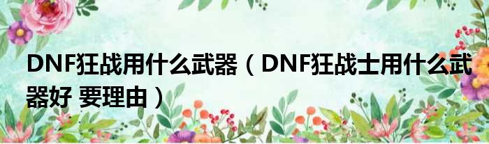 DNF狂战用什么武器(DNF狂战士用什么武器好 要理由)
