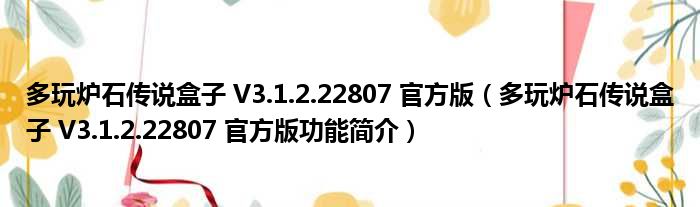 导读 大家好,关于多玩炉石传说盒子 V3 1 2 22807 官方版,多玩炉石传说盒子 V3 1 2 22807 官方版功能简介这个很多人还不知道,小勒来为大家解
