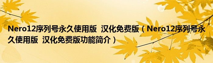 Nero12序列号永久使用版 汉化免费版(Nero12序列号永久使用版 汉化免费版功能简介)