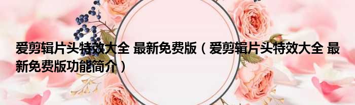 爱剪辑片头特效大全 最新免费版(爱剪辑片头特效大全 最新免费版功能简介)