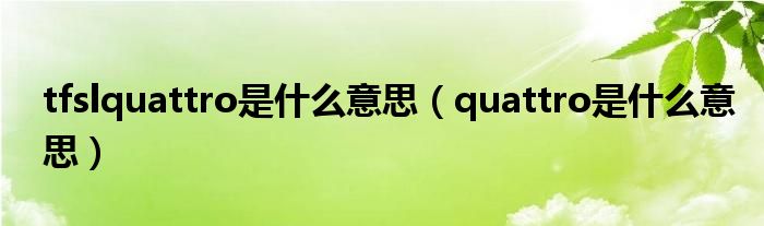 导读 大家好,今天小六子来为大家解答以下的问题,关于tfslquattro是什么意思,quattro是什么意思这个很多人还不知道,现在让我们一起来看看吧!1